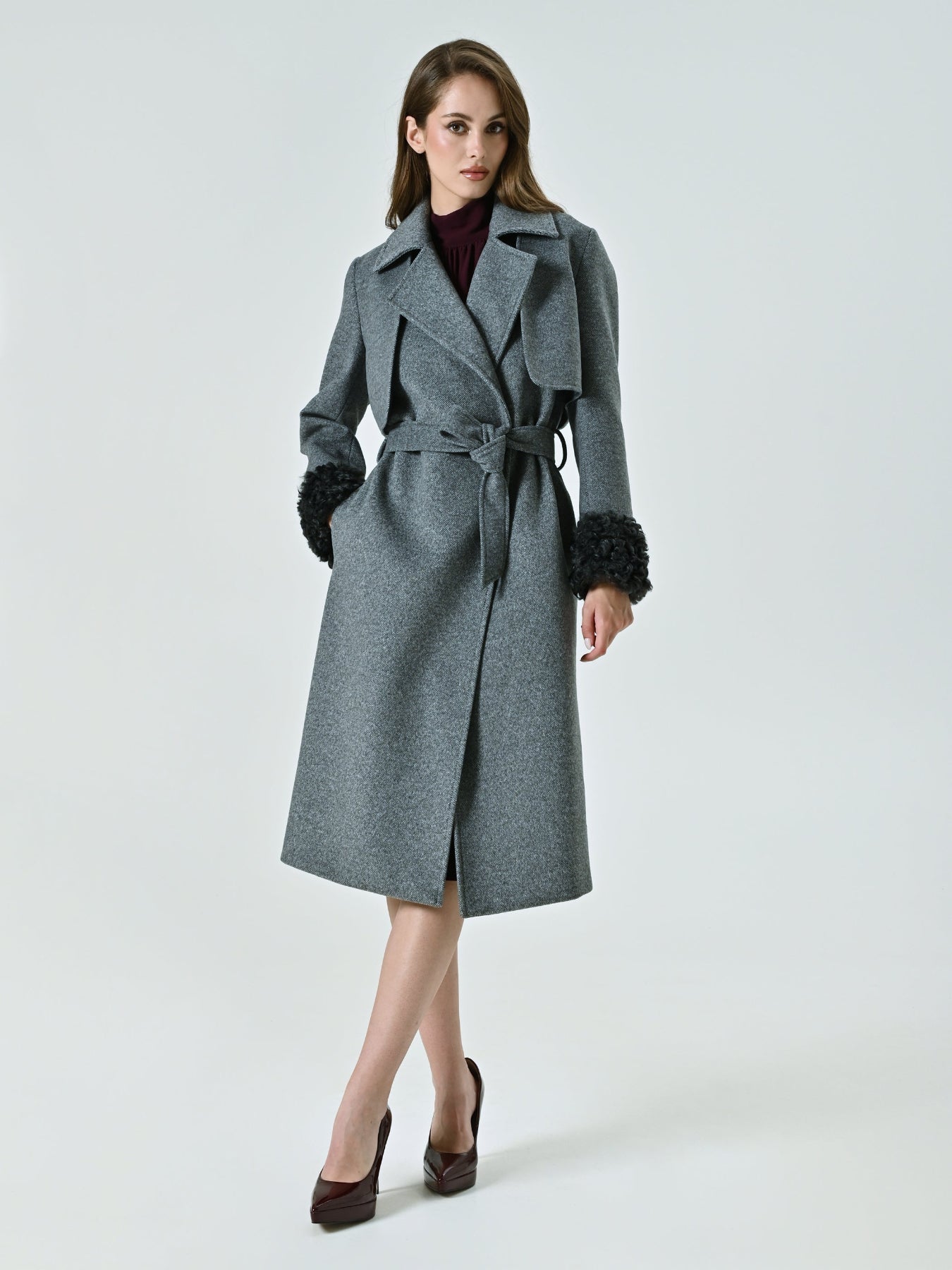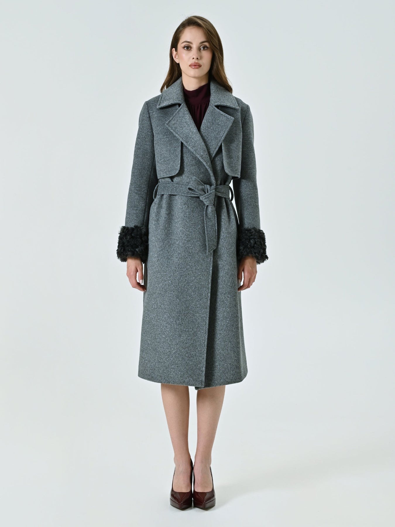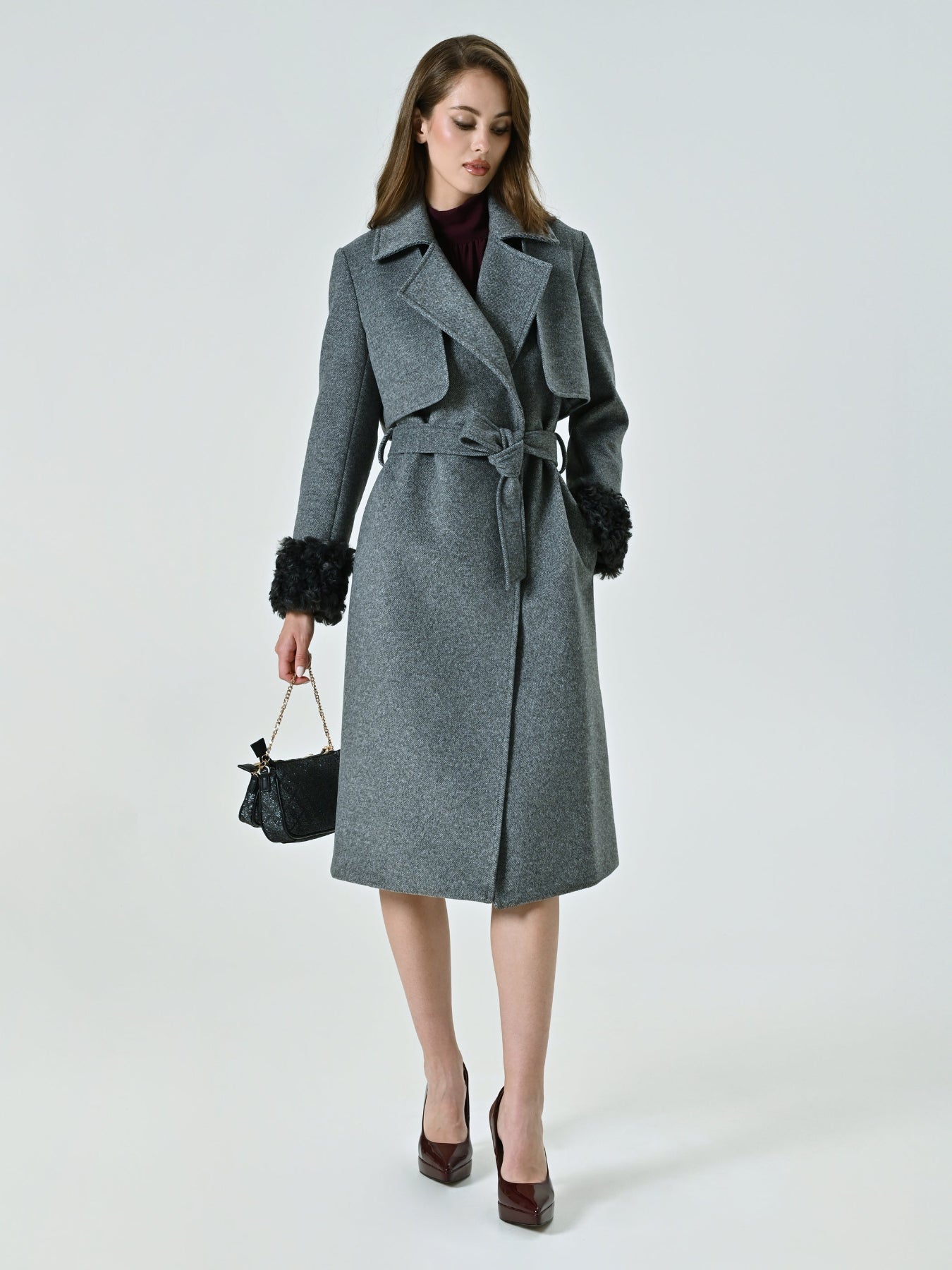 Αυτό το κομμάτι είναι μέρος της κάψουλας Giorgia Palmas X Rinascimento . Η Giorgia Palmas είναι Ιταλίδα influencer και showgirl. Ανακαλύψτε τον αποκλειστικό σχεδιασμό της κάψουλας της, που δημιουργήθηκε σε συνεργασία με την Rinascimento.Το παλτό Three-in-One με μανσέτες γούνας είναι ένα μεταμορφώσιμο κομμάτι με εκλεπτυσμένη αίσθηση, σχεδιασμένο για να προσαρμόζεται σε κάθε περίσταση με ευελιξία και στυλ. Κατασκευασμένο από απαλό μελανζέ ύφασμα με διαγώνιο σχέδιο, το παλτό Three-in-One  περιλαμβάνει τρία φορέσιμα στοιχεία: παλτό, bolero και γιλέκο. Οι λοξές τσέπες προσθέτουν λειτουργικότητα, ενώ το κούμπωμα με ζώνη ορίζει τη σιλουέτα με κομψότητα. Το παλτό Three-in-One με μανσέτες γούνας ταιριάζει φυσικά με τις εμφανίσεις της σεζόν. Φορέστε το παλτό σε κάθε περίσταση για να εκφράσετε τη σύγχρονη κομψότητα. Το ένδυμα είναι κατασκευασμένο στην Ιταλία. Το μοντέλο έχει ύψος 1,77 μ. και φοράει μέγεθος S.