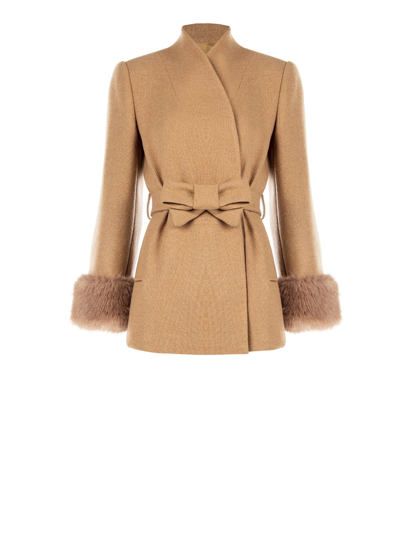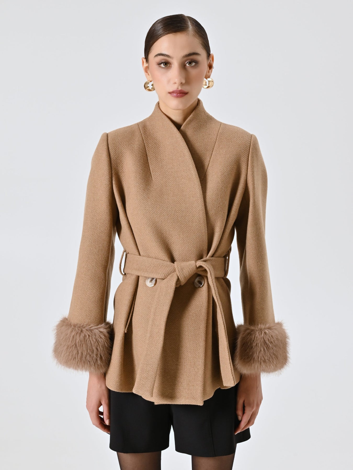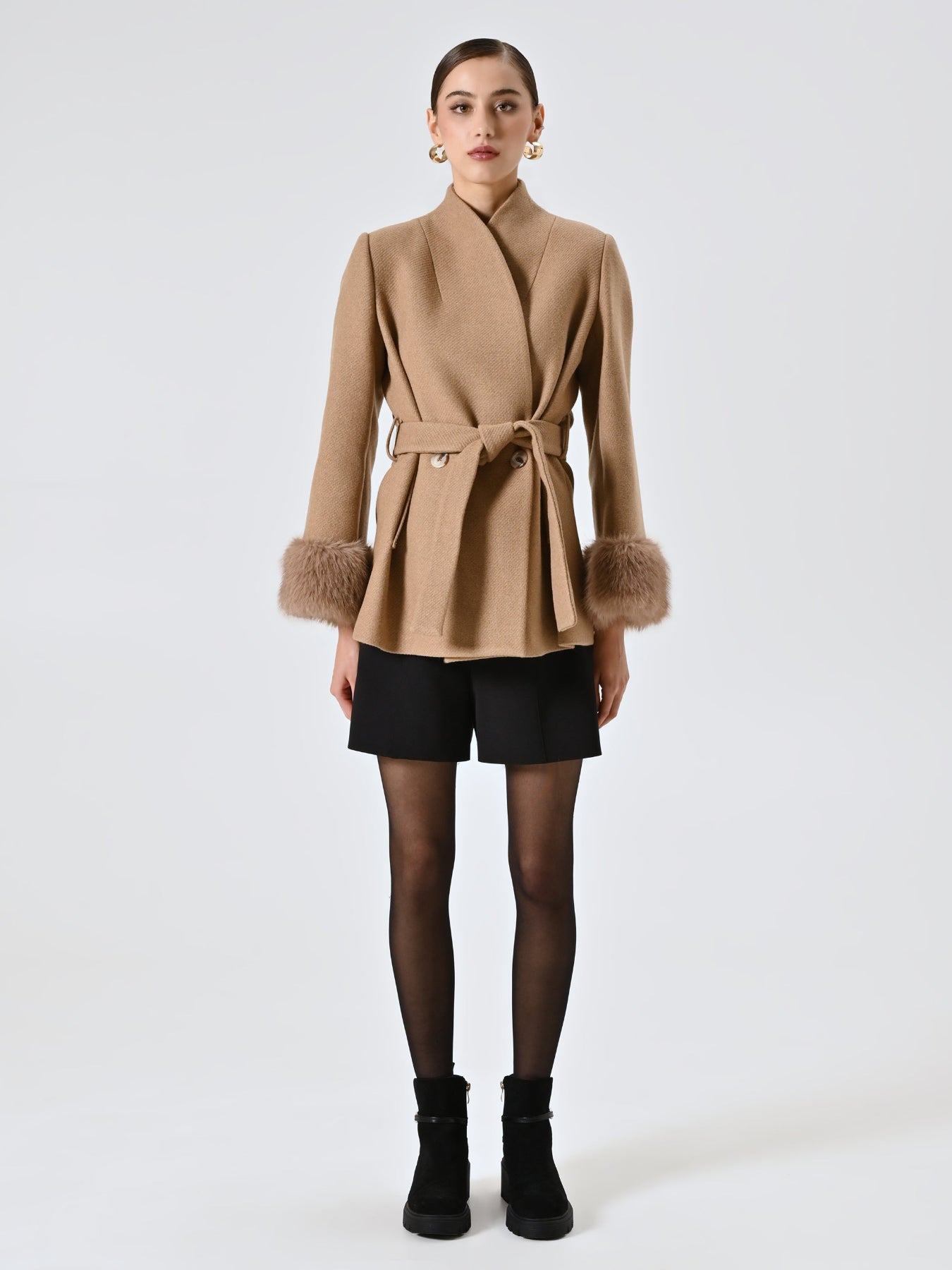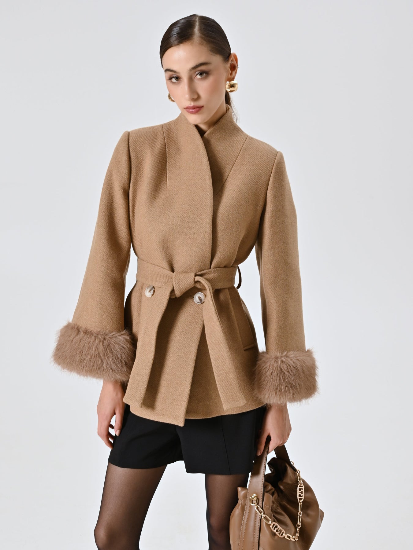 Το Κοντό Παλτό λεπτομέρειες Γούνας είναι ένα εκλεπτυσμένο πανωφόρι που προσθέτει μια πινελιά γοητείας στις χειμερινές σας εμφανίσεις, συνδυάζοντας άνεση και φινέτσα.