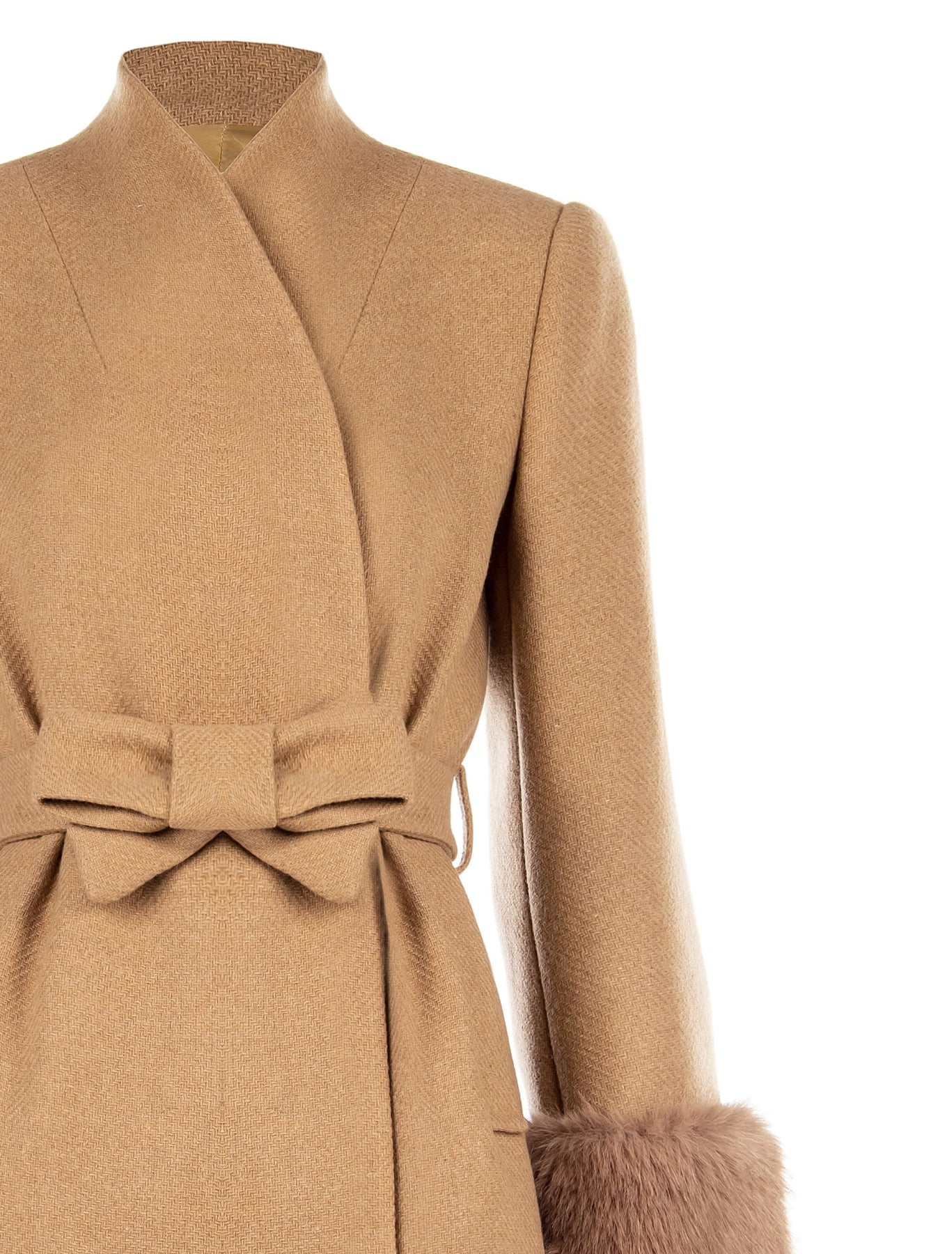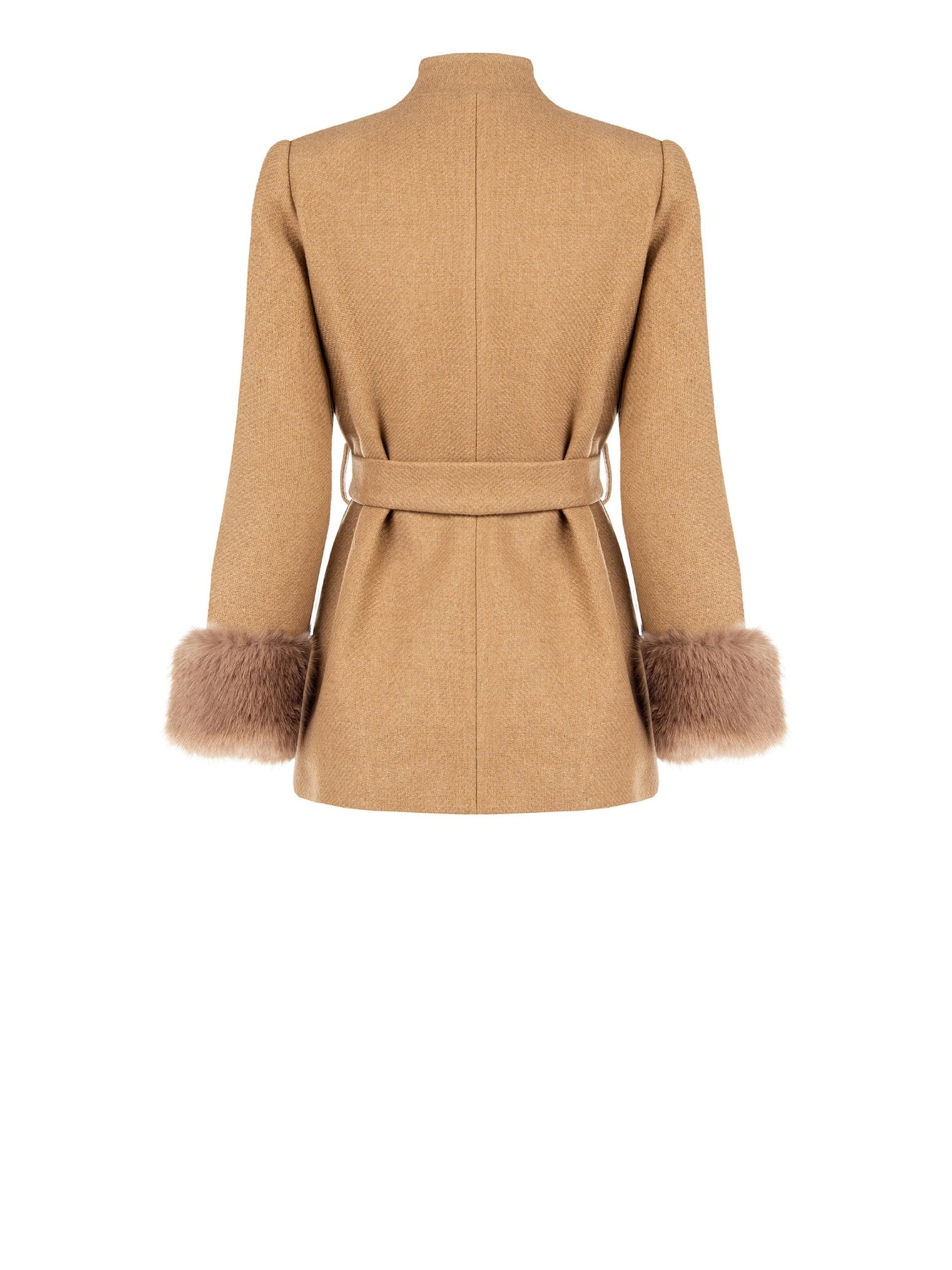 Κατασκευασμένο από διαγώνιο ύφασμα με λεπτομέρειες από καπιτονέ δέρμα, το Κοντό Παλτό με Ενθέματα Γούνας διαθέτει σταυρωτό σχέδιο, μανσέτες και κάτω τελείωμα από απαλή τεχνητή γούνα. Η αφαιρούμενη ζώνη με θηλιές τονίζει τη μέση, ενώ το κούμπωμα με κουμπιά ολοκληρώνει το σχέδιο με μια κλασική, θηλυκή πινελιά.