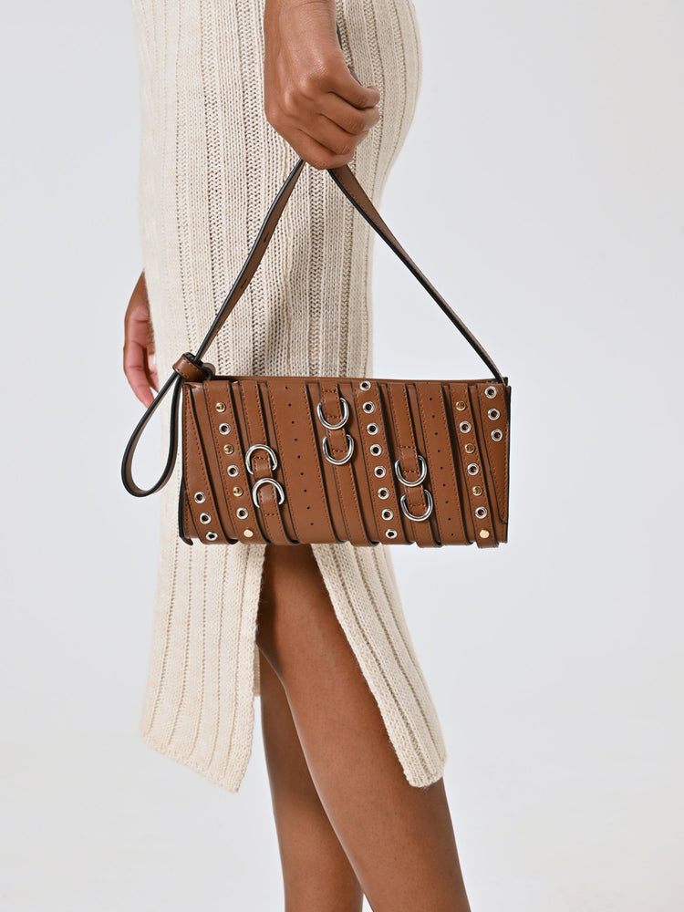 Καφέ τσάντα με αγκράφες και τρουκς