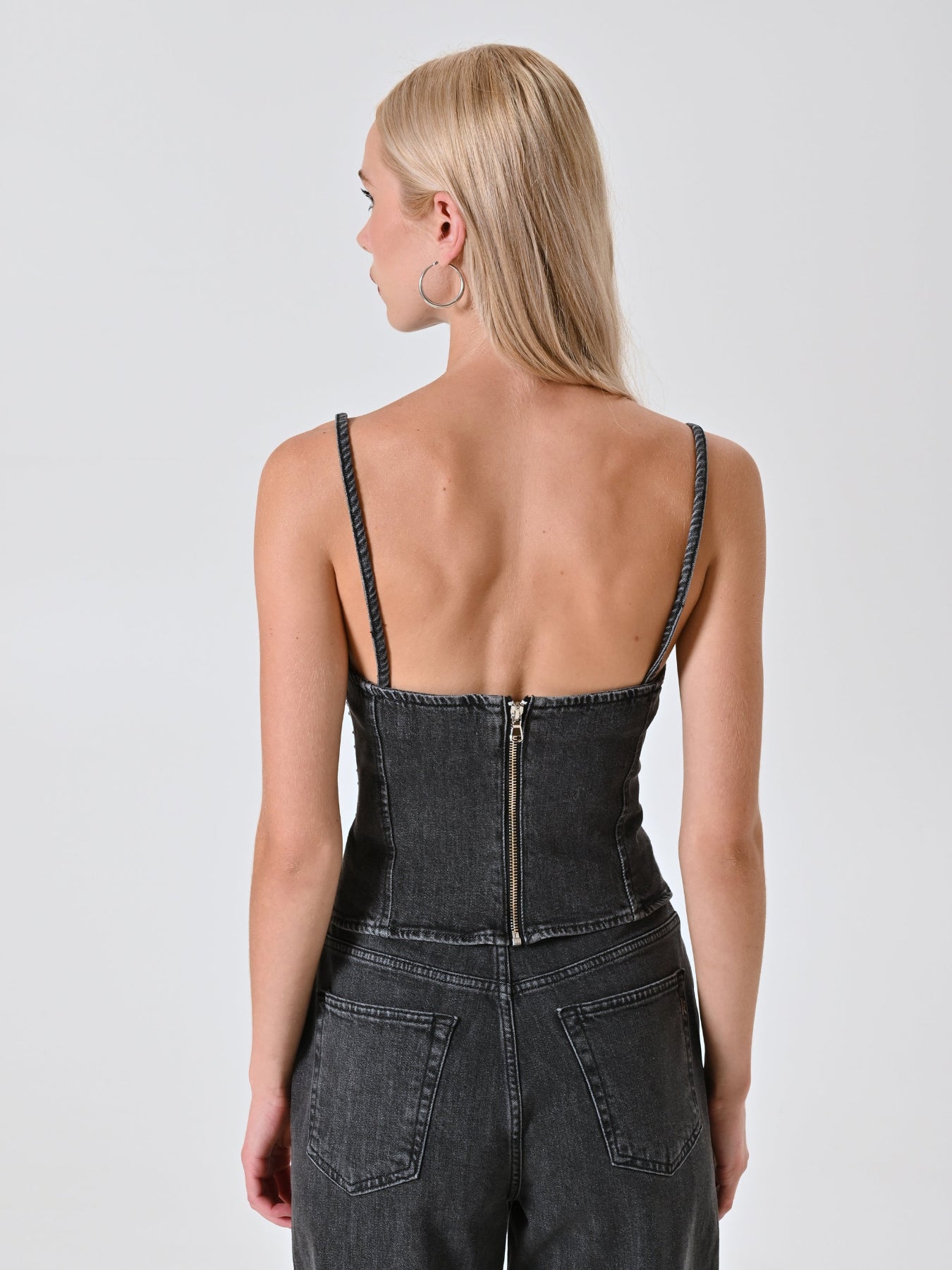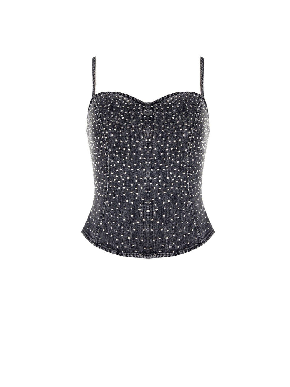 Το Γκρι Τοπ με Στρας είναι ένα θηλυκό και εκθαμβωτικό κομμάτι, σχεδιασμένο για να ολοκληρώνει με στυλ τις πιο εκλεπτυσμένες βραδινές εμφανίσεις. Κατασκευασμένο από σκούρο τζιν διακοσμημένο με στρας, το Γκρι Τοπ με Στρας διαθέτει κομψό ντεκολτέ με σχήμα καρδιάς και λεπτές τιράντες που κολακεύουν τη σιλουέτα. Το φερμουάρ στο πίσω μέρος εξασφαλίζει άνετη και κομψή εφαρμογή.Το γκρι τοπ με στρας συνδυάζεται τέλεια με το γκρι τζιν με στρας για να δημιουργήσετε μια ομοιόμορφη, λαμπερή συνολική εμφάνιση. Το ένδυμα είναι κατασκευασμένο στην Ιταλία • Το μοντέλο έχει ύψος 1,74 μ. και φοράει μέγεθος S