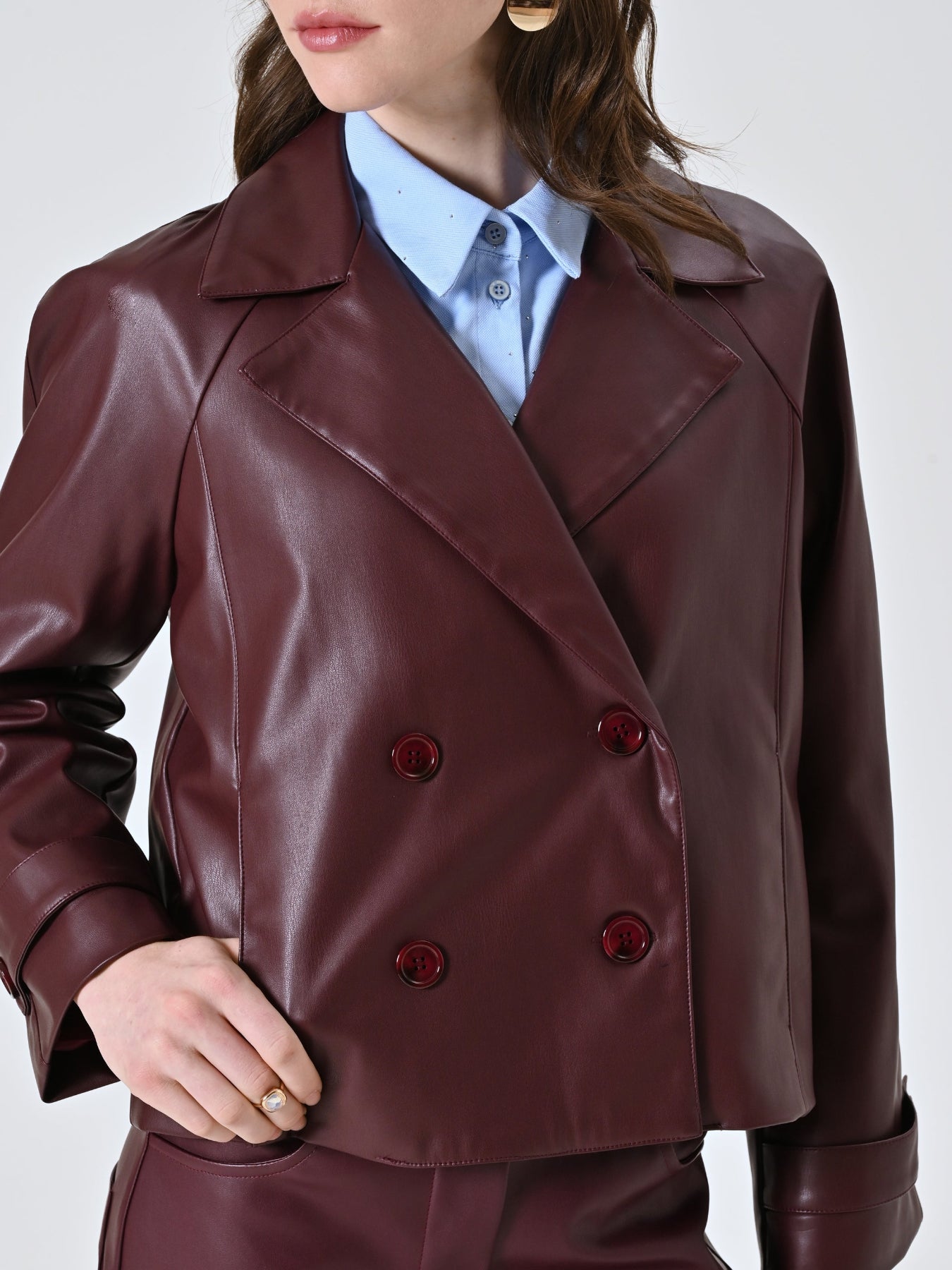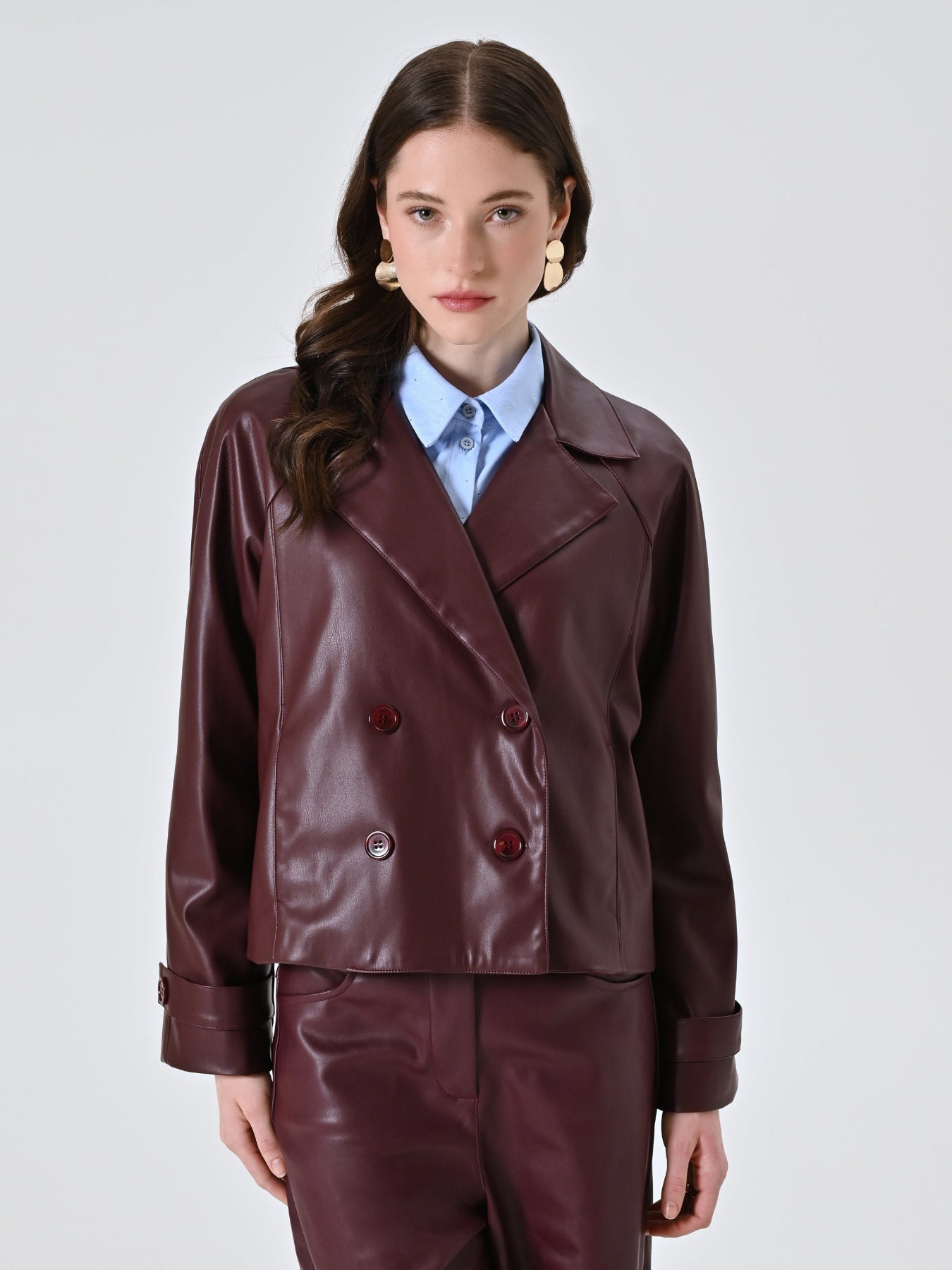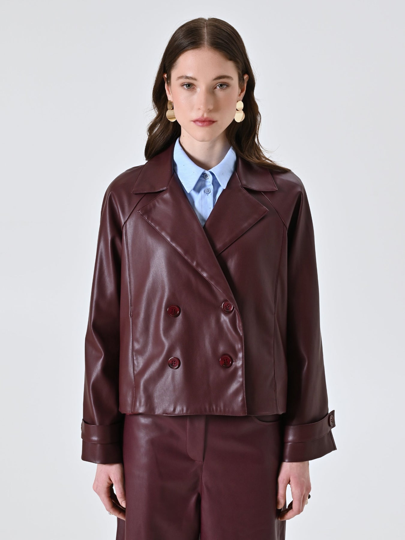 Μπορντό μπουφάν με διπλό κούμπωμα από τεχνητό δέρμα