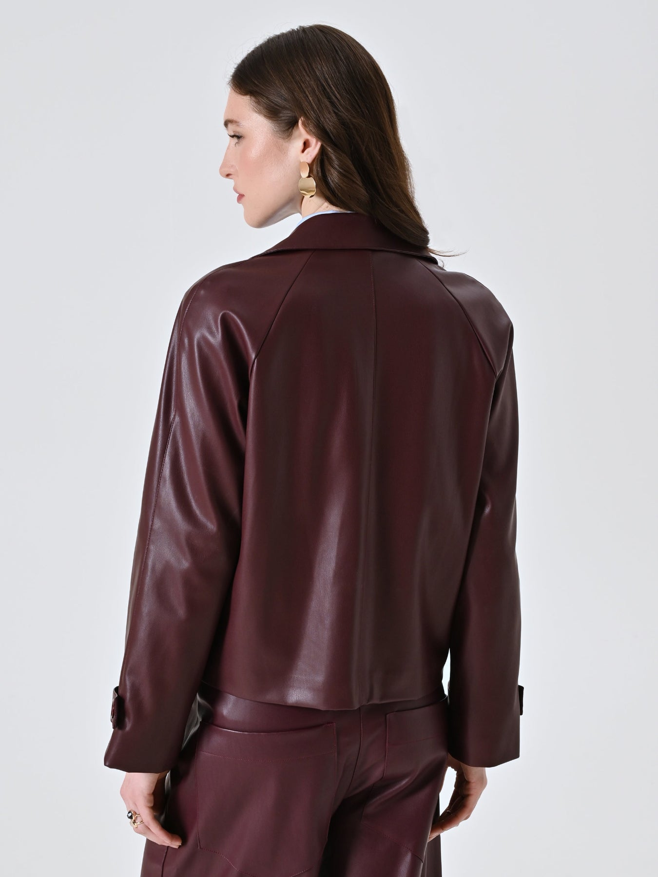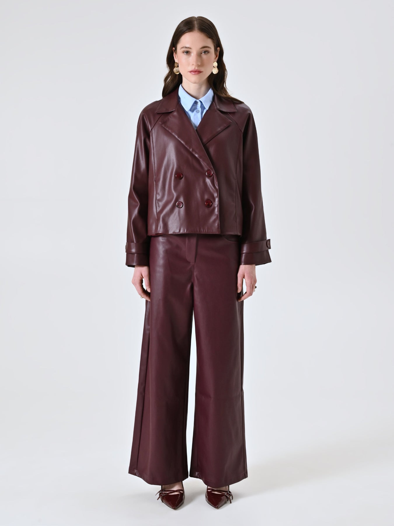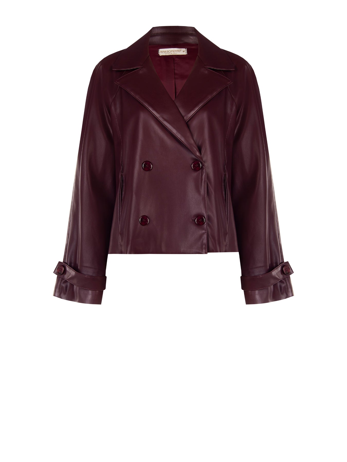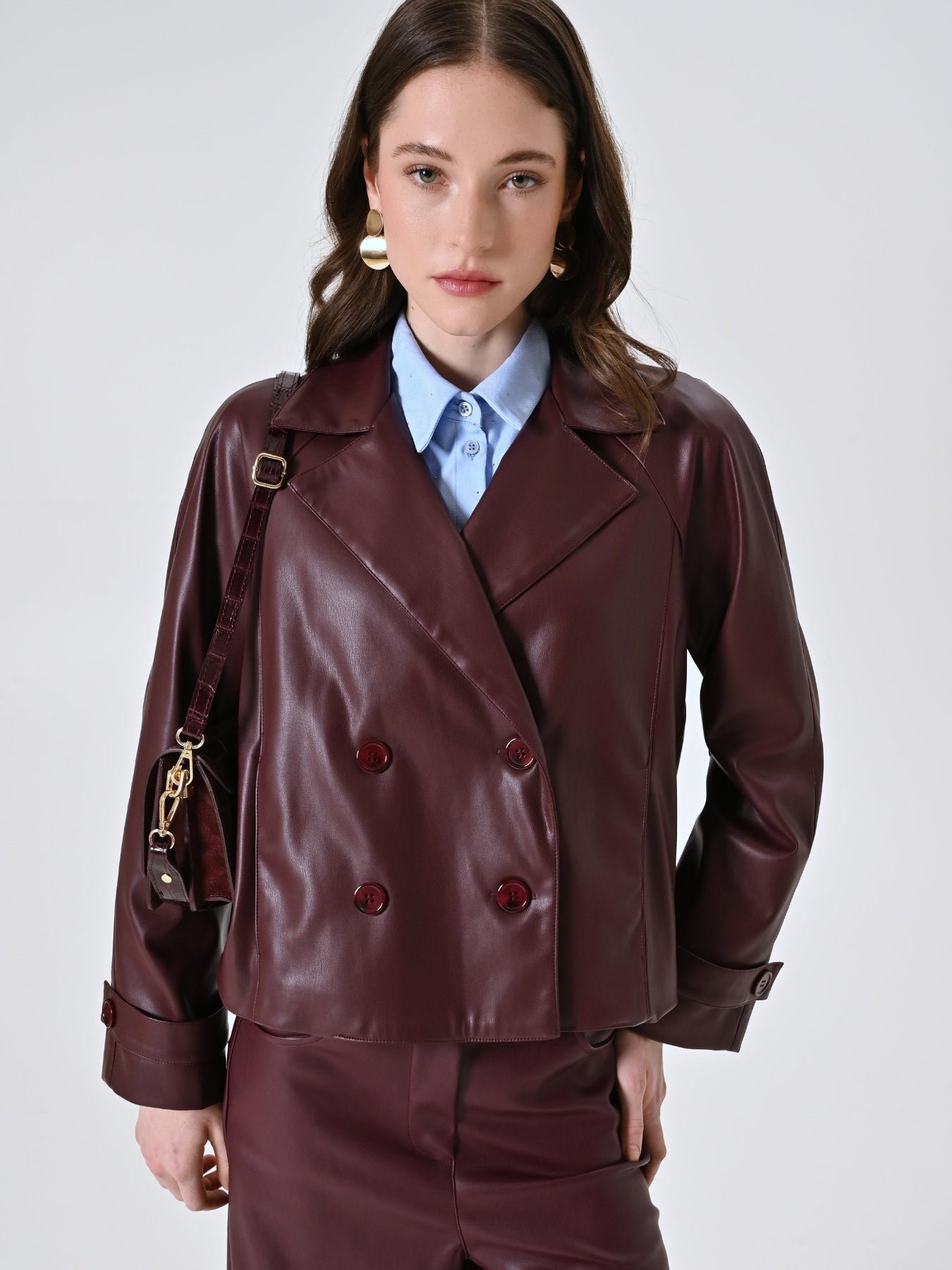 Μπορντό μπουφάν με διπλό κούμπωμα από τεχνητό δέρμα