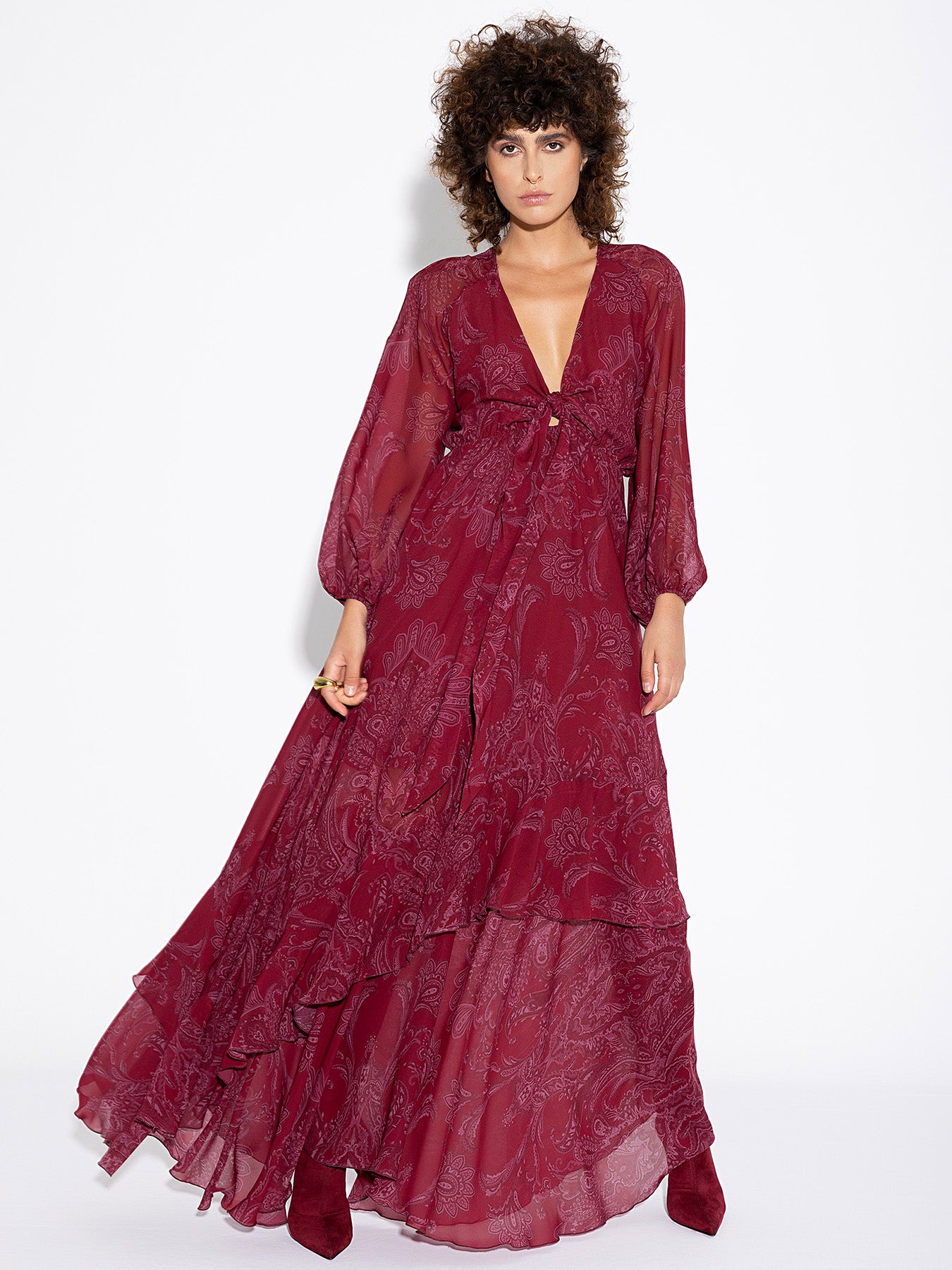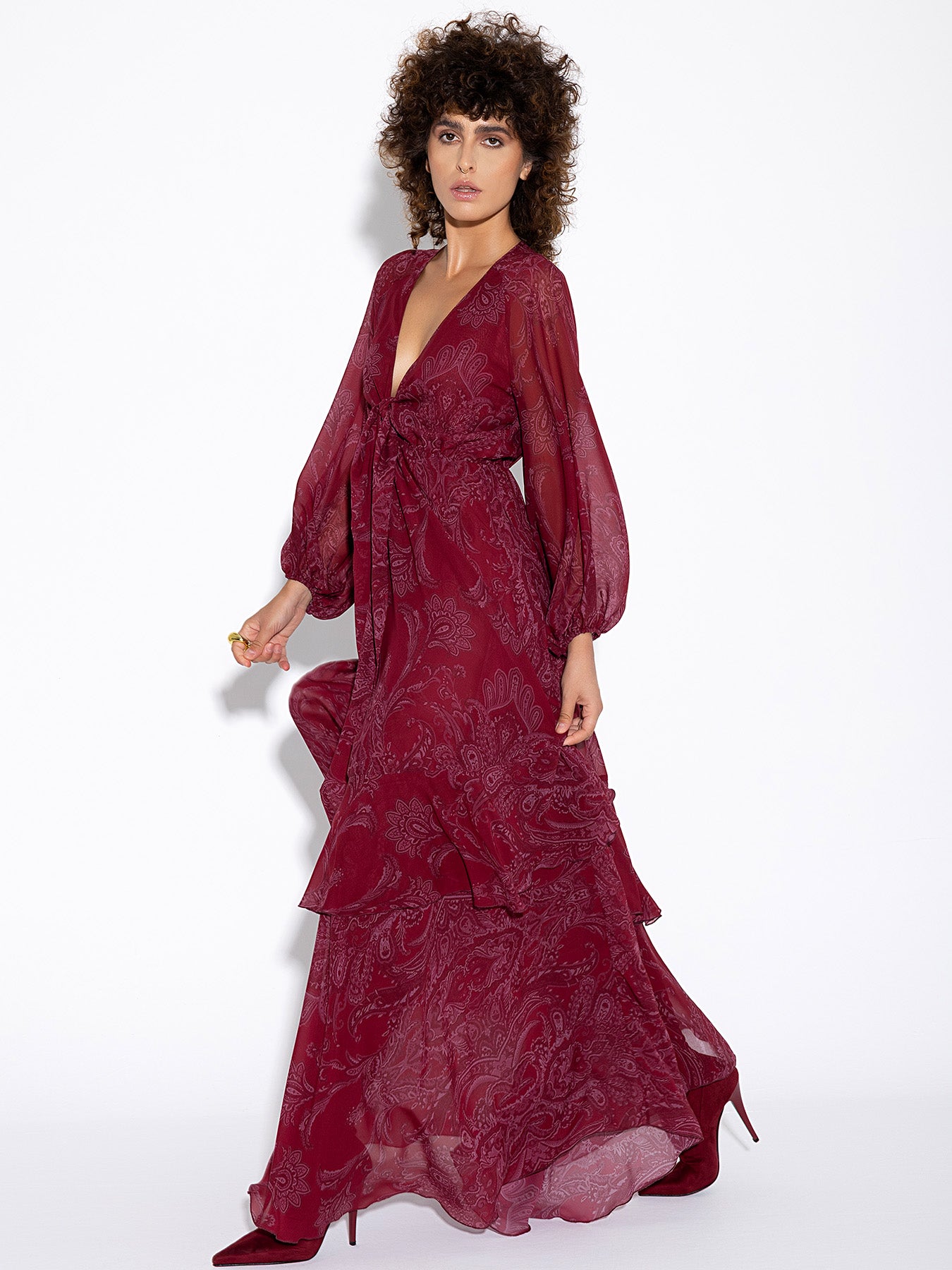 Μακρύ φόρεμα με βολάν,δέσιμο στο στήθος,σχεδιασμένο απο αέρινο ύφασμα σε μπορντό χρώμα για κομψές εκδηλώσεις και κάθε περίσταση όπου θέλετε να λάμψετε με κομψότητα.• Το ένδυμα είναι κατασκευασμένο στην Ελλάδα .Το μοντέλο έχει ύψος 1,77 και φοράει μέγεθος S.
