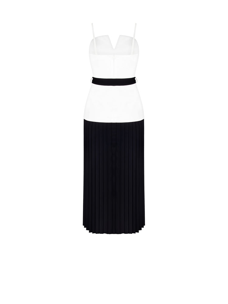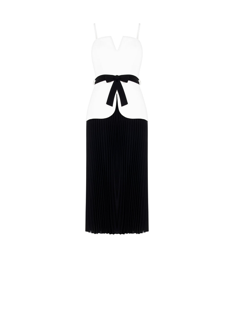 Φόρεμα Άσπρο Μαύρο Midi Plise