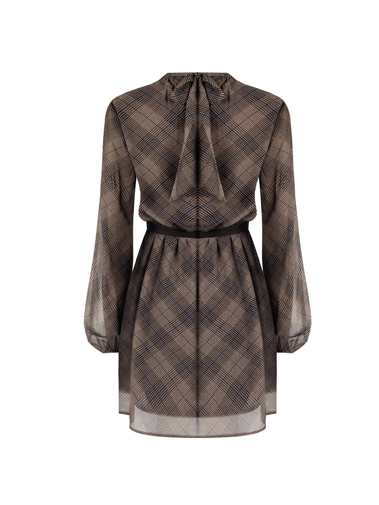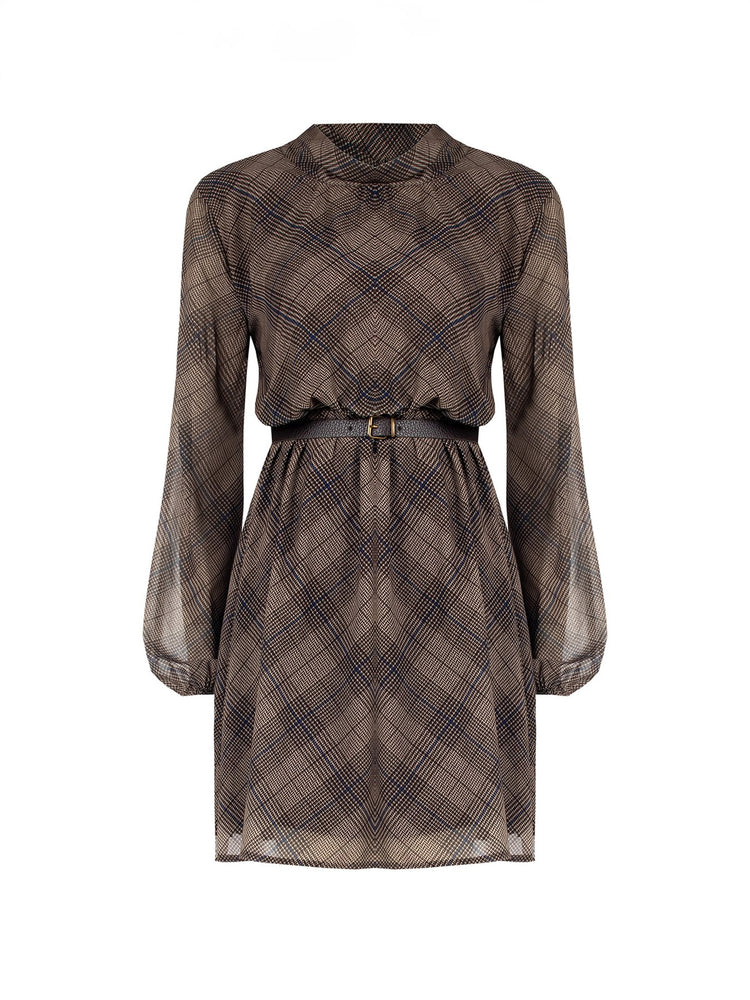 Φόρεμα Mini Καφέ Καρό