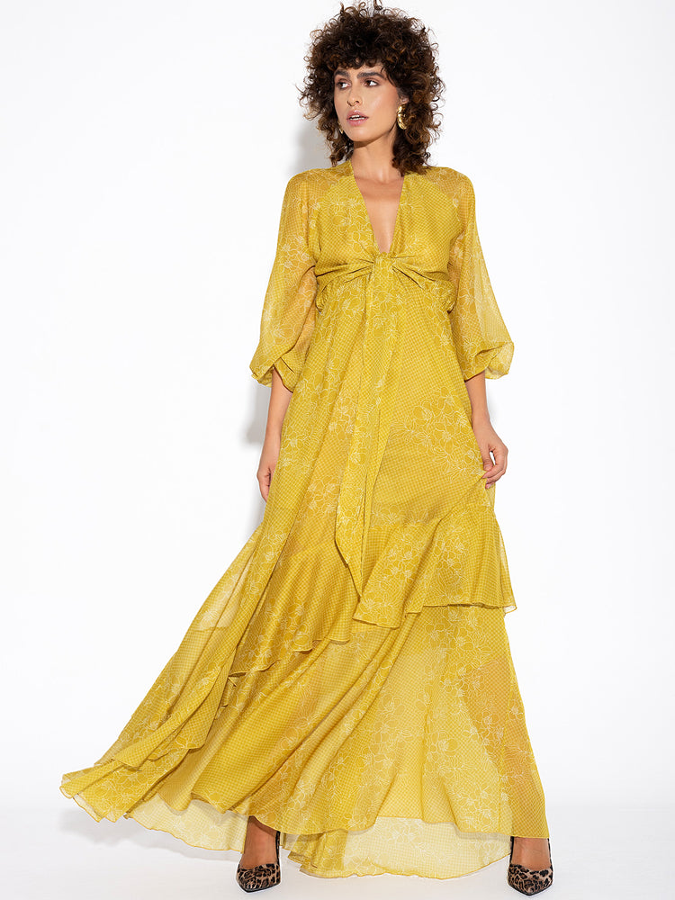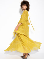 Φόρεμα Μακρύ Μουσταρδί με Βολάν