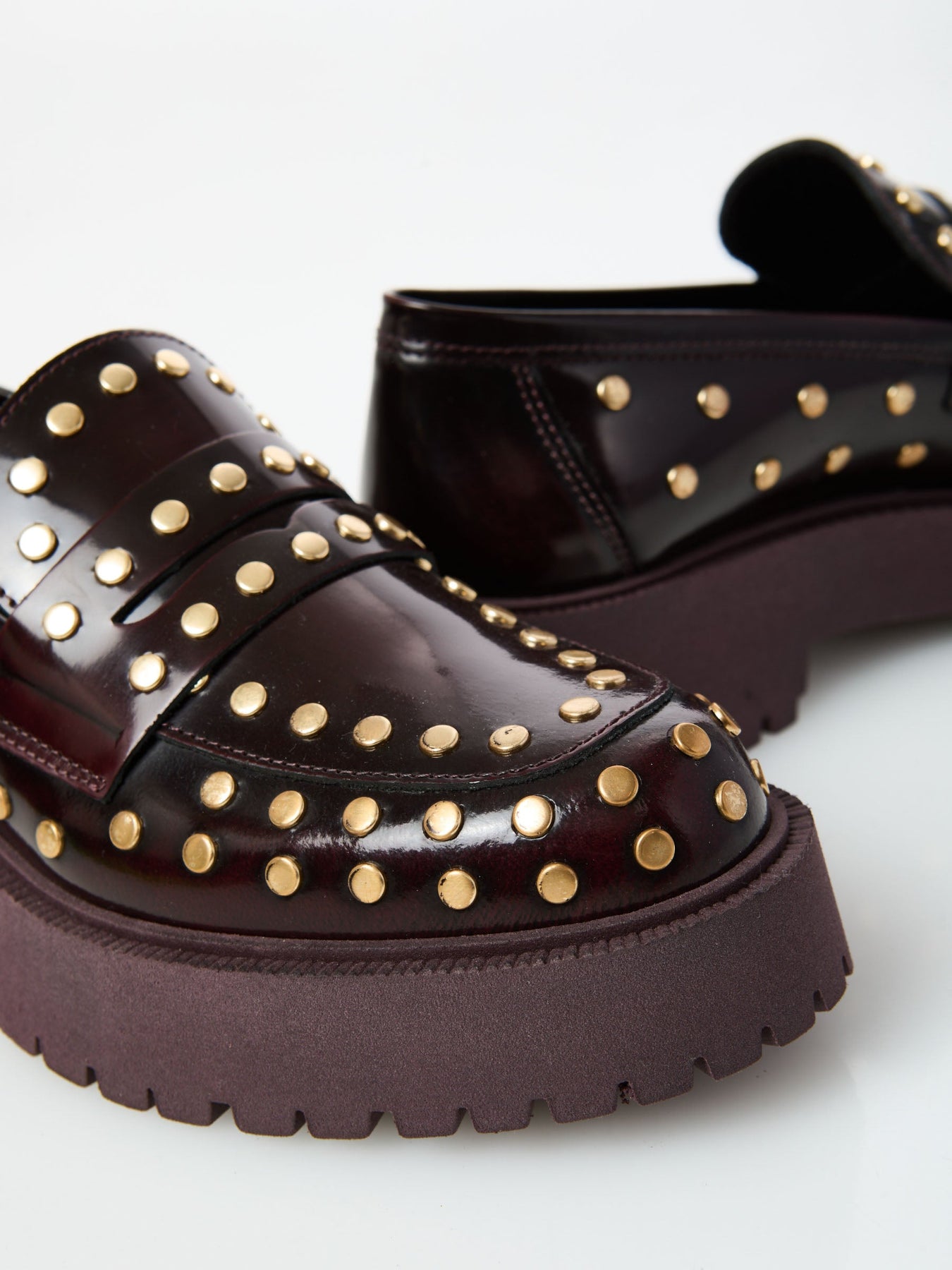 Mocassini σε κομψή μπορντό απόχρωση από την Ovyè Main Collection, με δερμάτινο επάνω μέρος και eco-δερματίνη επένδυση. Διαθέτουν σόλα από καουτσούκ και δερμάτινο πάτο, προσφέροντας άνεση και στήριξη σε κάθε βήμα.